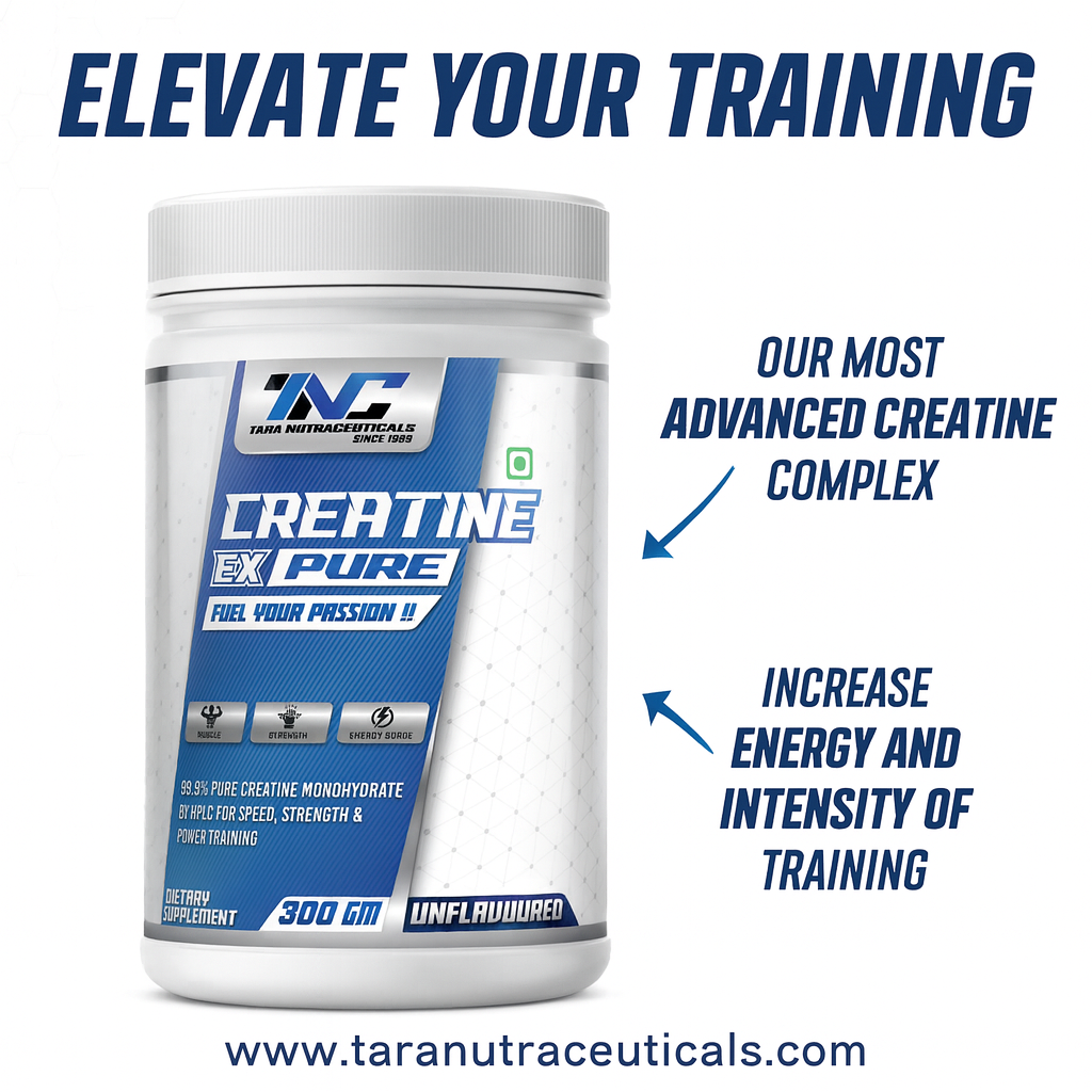 Creatine-Ex Pure by Tara Nutraceuticals is a high-quality creatine monohydrate supplement that enhances strength, speed, and power. With HPLC-grade purity, it supports energy production and muscle performance. Ideal for athletes seeking maximum results.